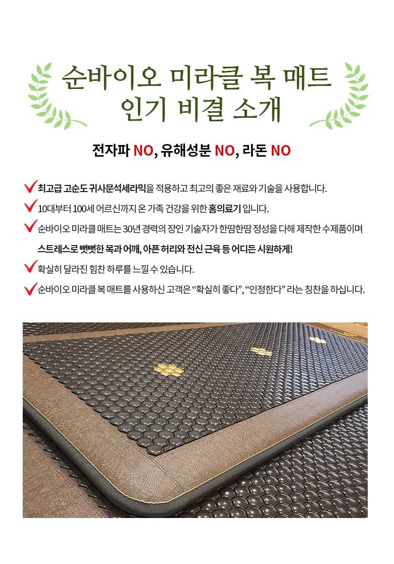 순바이오 홈의료기 인기제품 프리미엄 귀사문석 명품보료를 소개합니다.