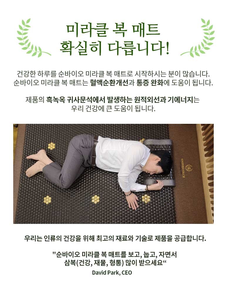 그날 귀사문석 명품의료기 매트의 효과를 체험하고 바로 신청하여 지금 잘 사용하고 있습니다.